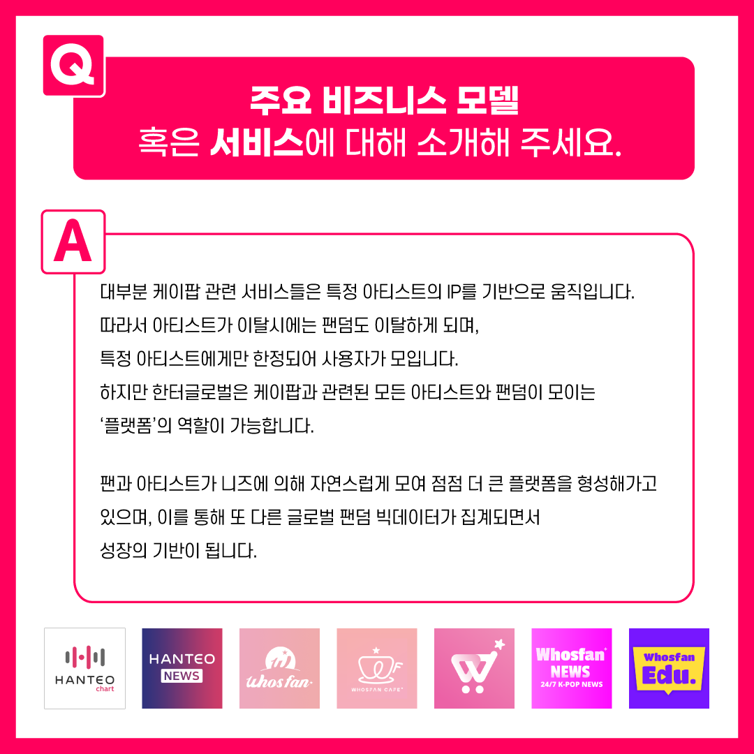 후즈팬 카페, 후즈팬 스토어, 후즈팬 뉴스 등 K-POP 빅데이터를 활용한 한터글로벌의 비즈니스 모델들을 알아볼까요?