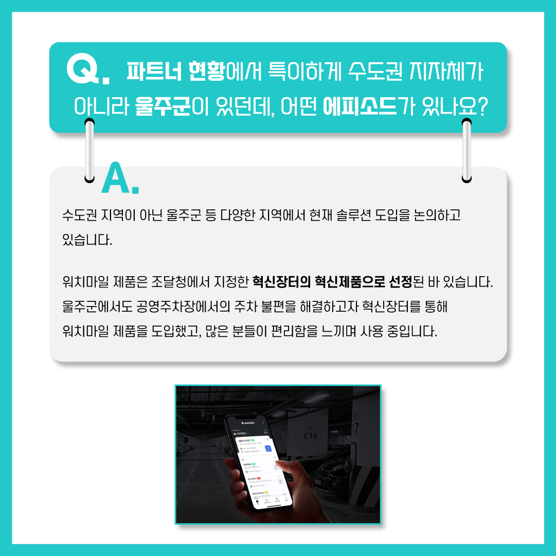 워치마일 앱을 사용하면 주차장 내 인프라를 통해 수집된 주차장 정보를 스마트폰으로 실시간 확인할 수 있다고 하는데요.