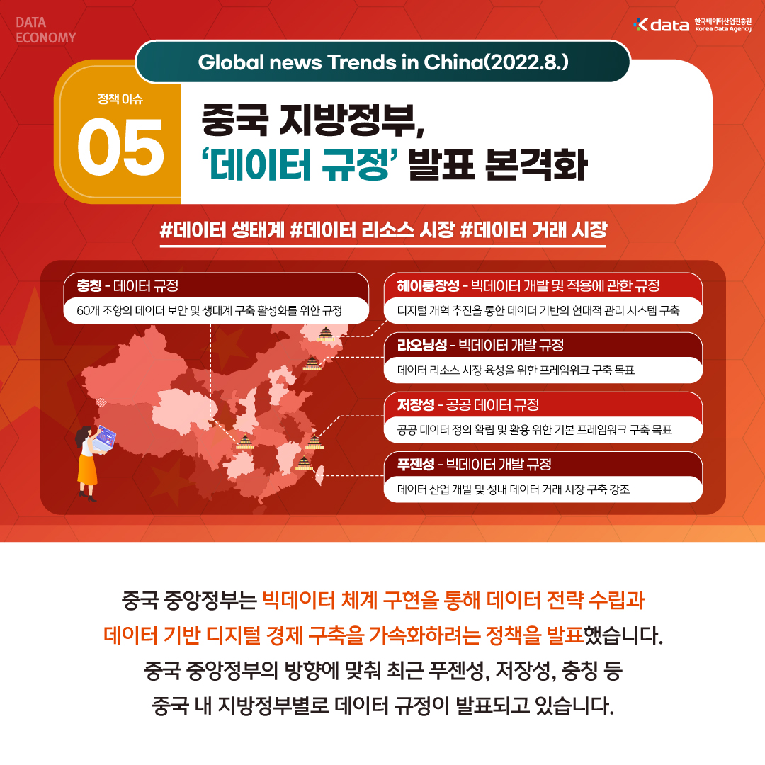 중국 중앙정부의 방향에 맞춰 중국 내 지방정부별 데이터 규정이 발표되고 있습니다.