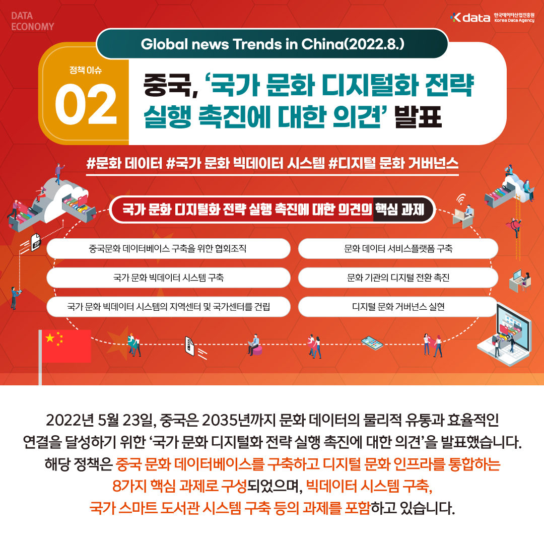 22년 5월, 중국은 2035년까지 문화 데이터의 물리적 유통과 효율적인 연결을 달성하기 위한