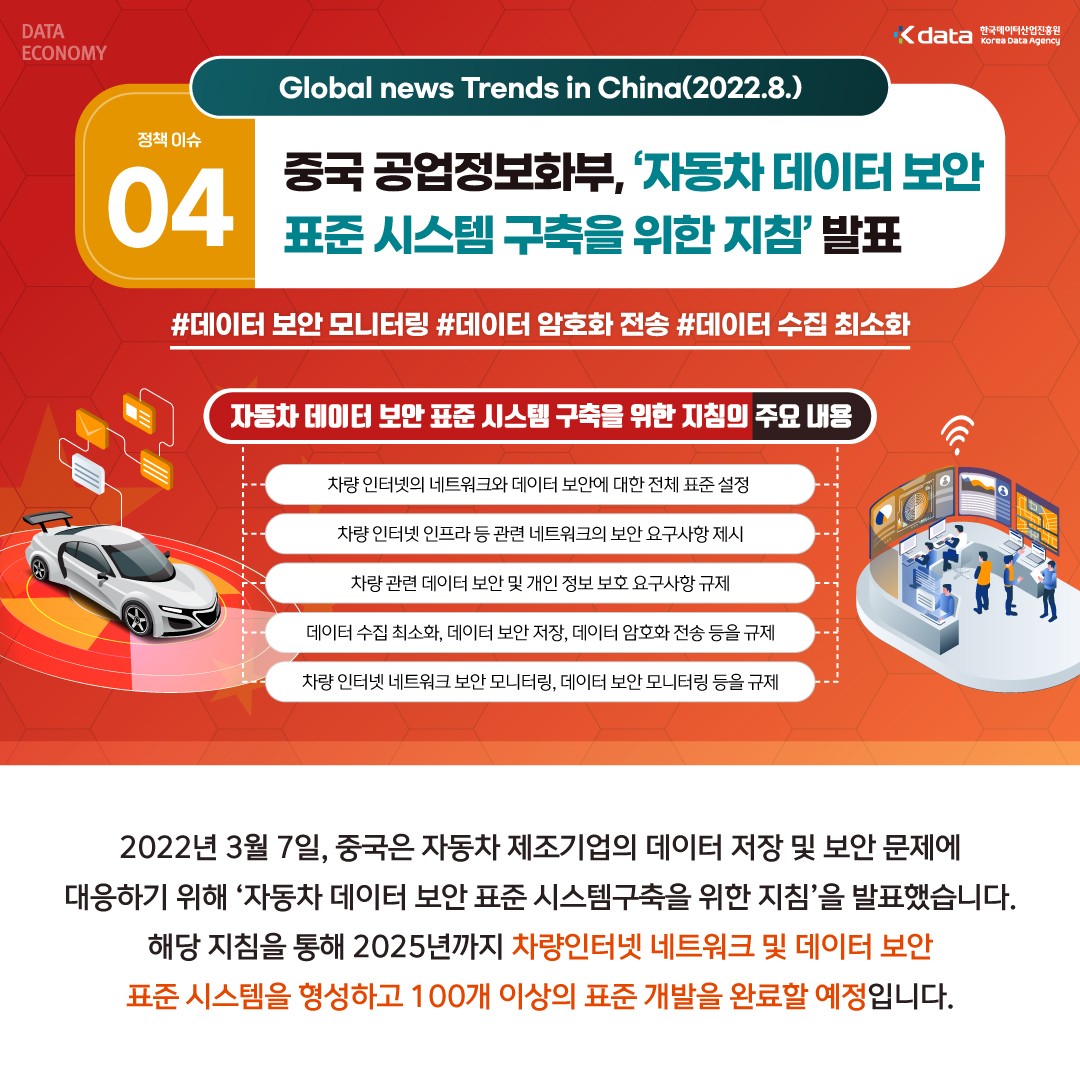 22년 3월, 중국 공업정보화부는 자동차 제조기업의 데이터 저장 및 보안 문제에 대응하기 위해