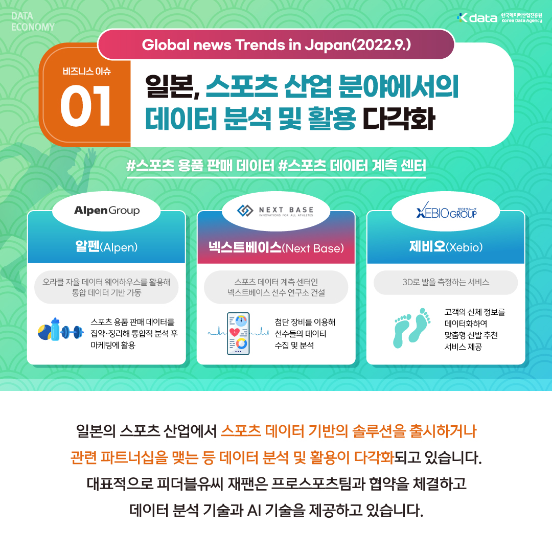 일본 스포츠 산업에서 데이터 분석 및 활용이 다각화되고 있습니다.