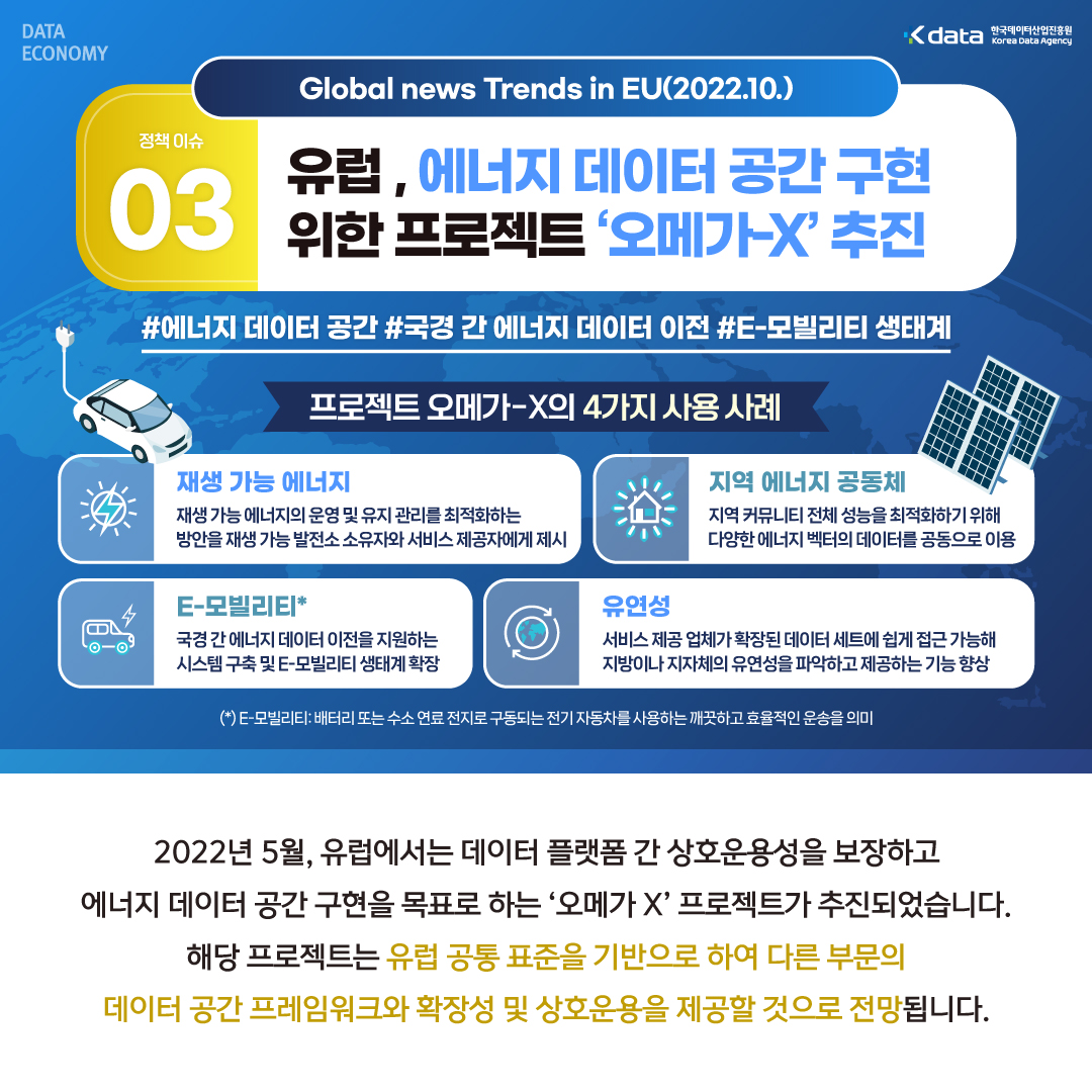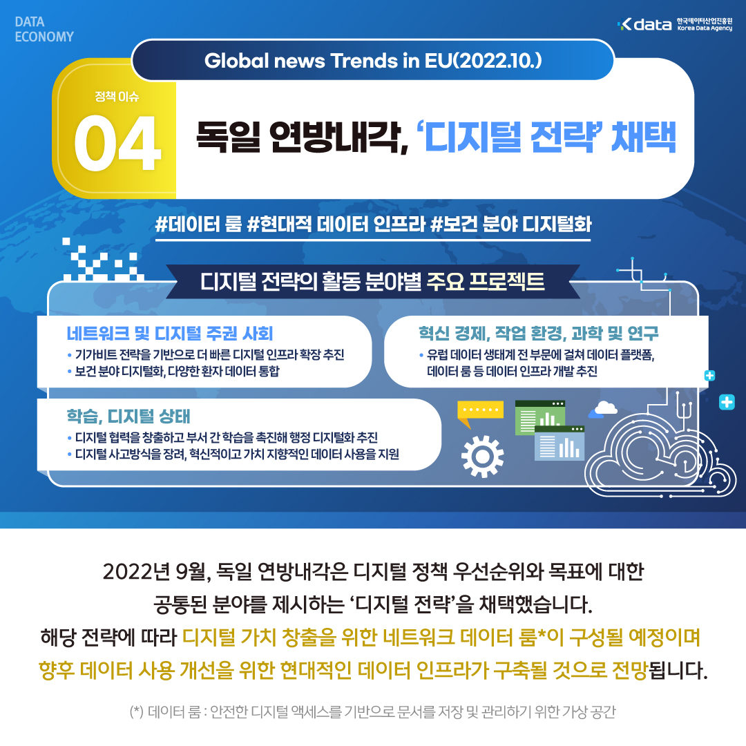 오늘은 '2022년 EU 데이터산업 정책·비즈니스 이슈 TOP5'를 소개해드릴 예정입니다.