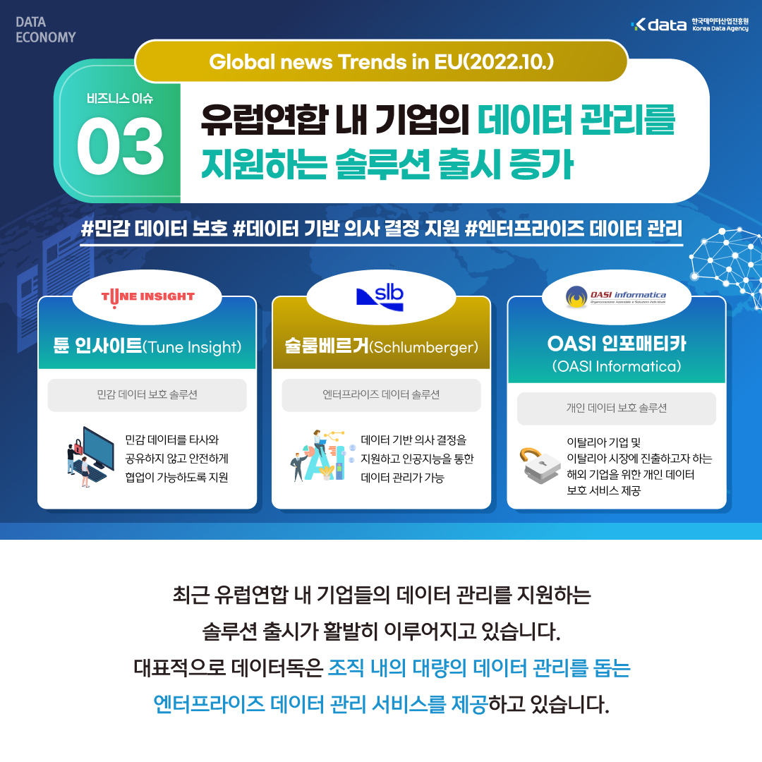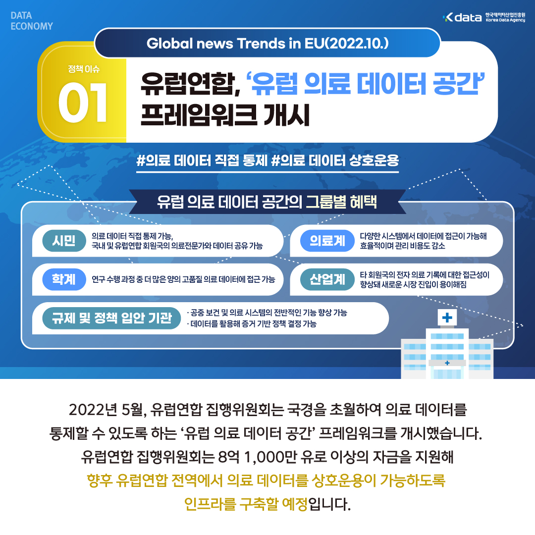 오늘은 '2022년 EU 데이터산업 정책·비즈니스 이슈 TOP5'를 소개해드릴 예정입니다.