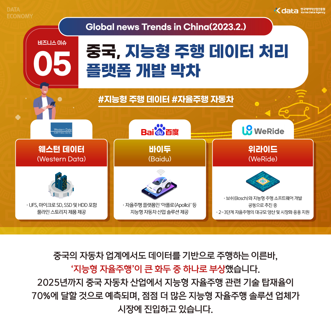 다섯 번째 이슈는 '중국, 지능형 주행 데이터 처리 플랫폼 개발 박차'입니다.