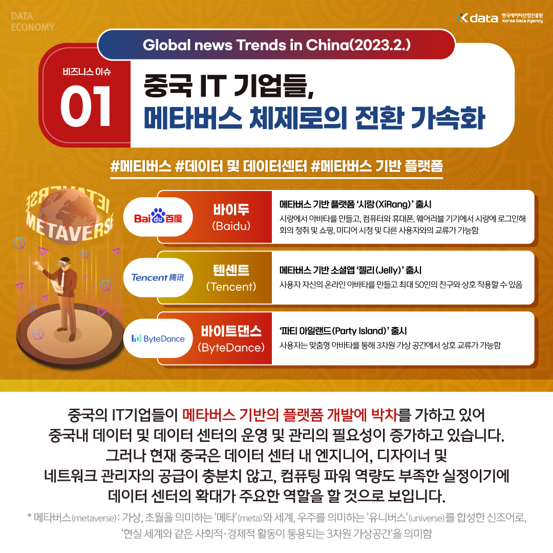 첫 번째 이슈는 '중국 IT 기업들, 메타버스 체제로의 전환 가속화'입니다.