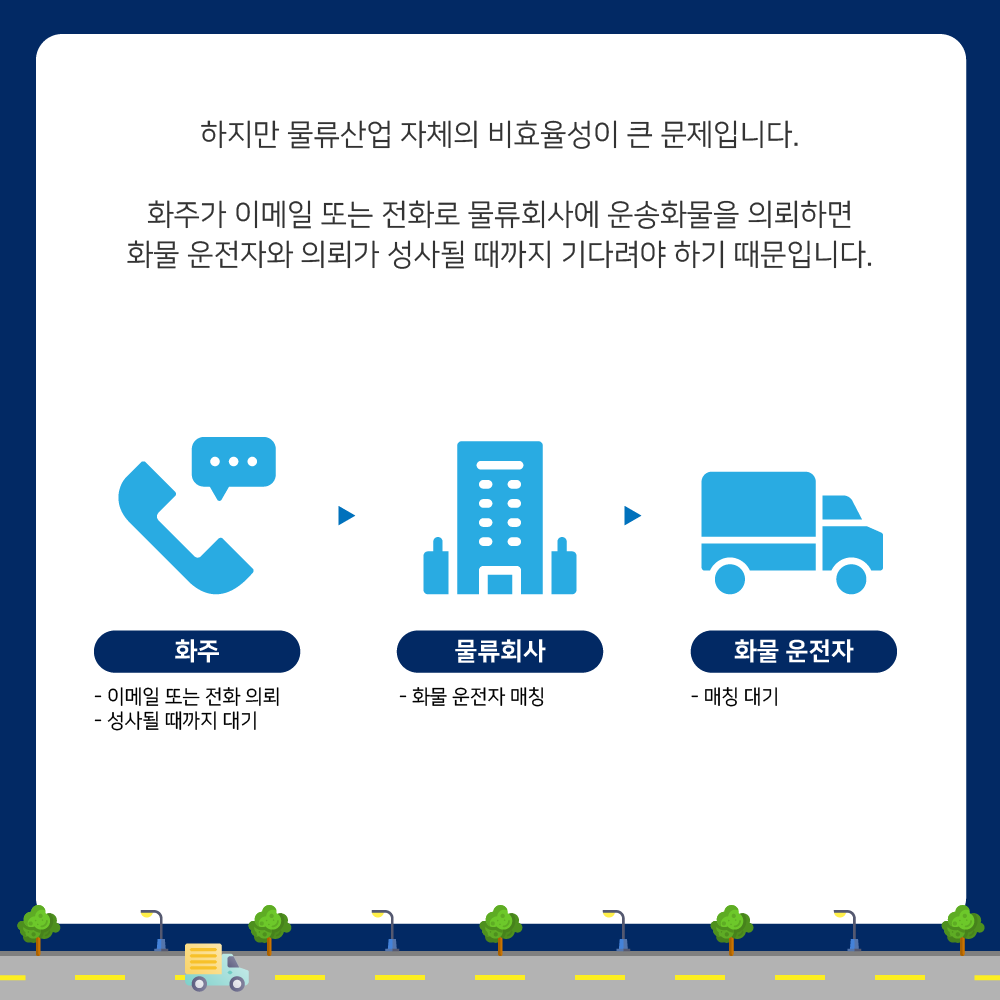 그런데 화물 운송을 의뢰할 때부터 실제로 화물이 운송될 때까지는 상당히 많은 시간이 걸리는데요.