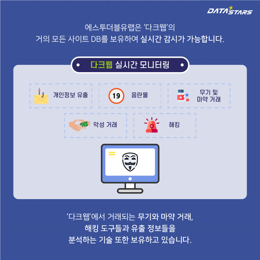 이런 '다크웹'을 실시간으로 감시하는 국내 기업이 있습니다.